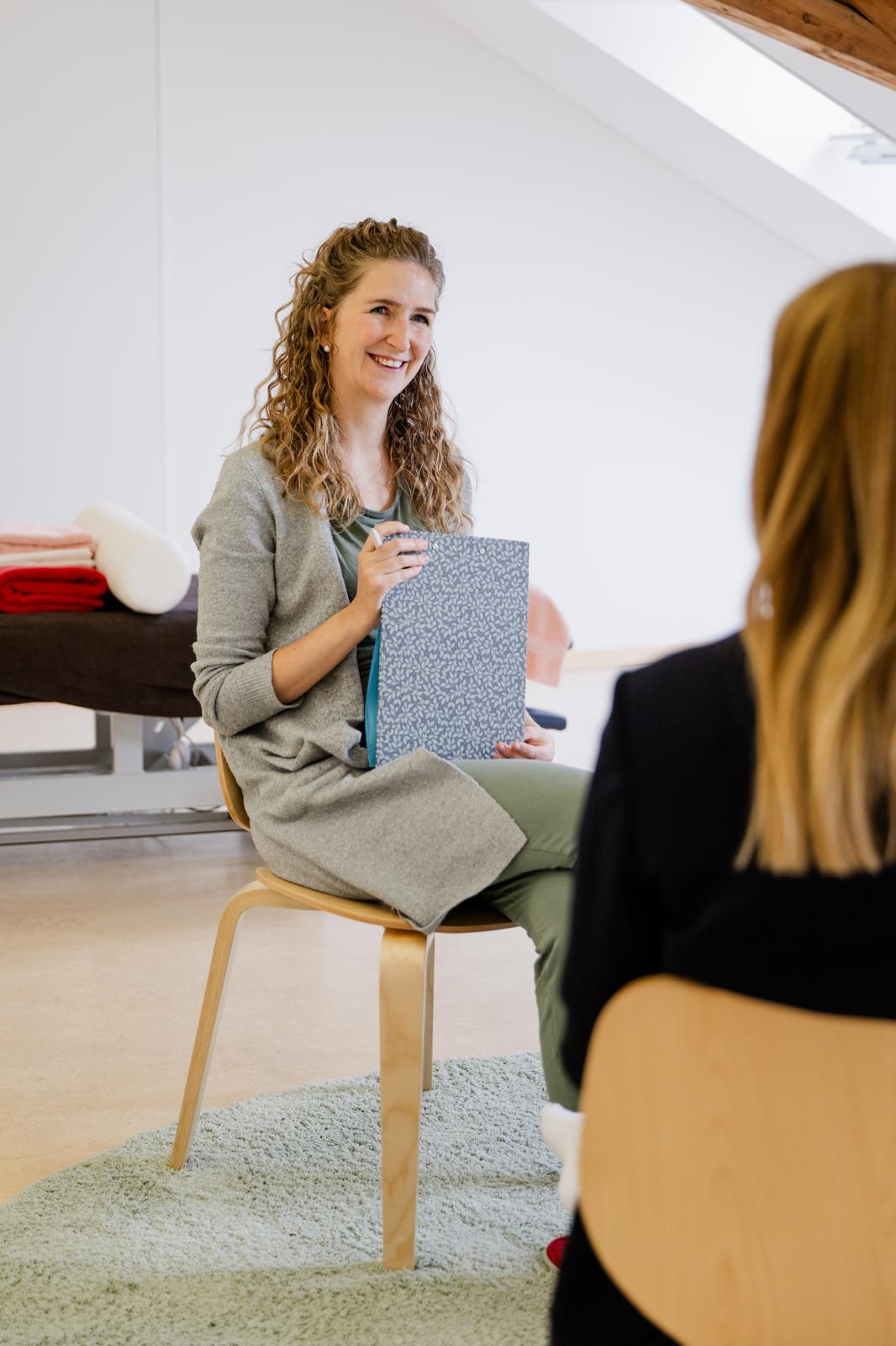 Bei der ersten Sitzung mache ich die Erstanamnese, danach stelle ich im Homeoffice einen auf dich und deine Bedürfnisse angepasster Therapieplan.